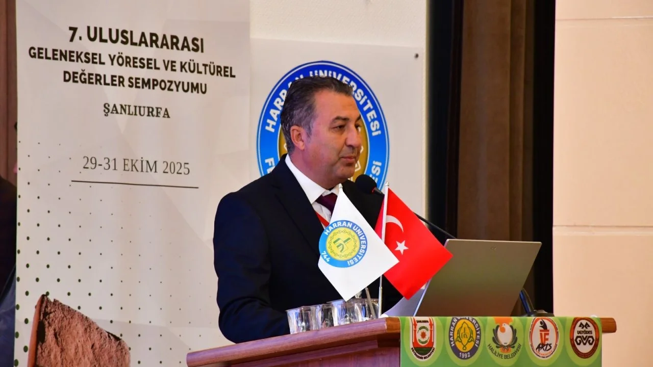 Harran Üniversitesi ve Şanlıurfa Büyükşehir Belediyesi ev sahipliğinde gerçekleştirilen sempozyumda Türk kültür ve sanatına yapmış olduğu katkılar için ödül alan Prof. Dr. Eroğlu'na ödülünü, Harran Üniversitesi Rektörü Prof. Dr. Mehmet Tahir Güllüoğlu takdim etti.