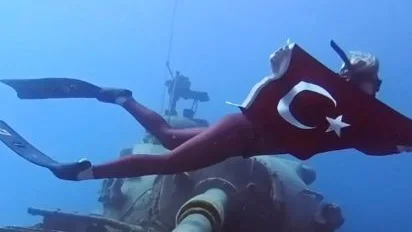 SERBEST Dalış Dünya Rekortmeni milli sporcu Şahika Ercümen, Antalya'nın Kaş ilçesinde 30 Ağustos Zafer Bayramı dolayısıyla dalış yaptı. İlçedeki batık tankın bulunduğu noktada dalan Ercümen, Türk bayrağı açıp, Zafer Bayramı'nı kutladı.