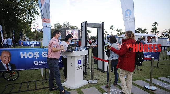 Konyaaltı Sahili Beach Park Varyant Meydanı'nda ücretsiz gerçekleştirilen etkinlikte sosyal mesafe ve güvenlik önlemleri titizlikle uygulandı. Etkinlik alanı bariyerlerle çevrildi, vatandaşlar iki ayrı kapıdan sosyal mesafe kurallarına uygun bir şekilde sinema alanına alındı. Giriş kapılarında güvenlik görevlileri vatandaşların ateş ölçümlerini gerçekleştirdi. Alan girişinde vatandaşların el dezenfekteleri yapıldı, maskesi olmayan vatandaşlara maske verildi.