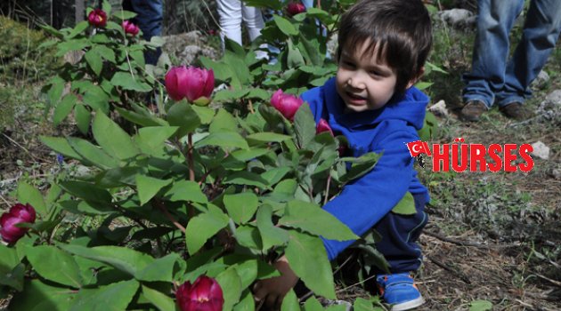 Yılkı atlarından ve domuzlardan korunmak için 7 dönümü çevrelenen 40 dönümlük arazide, doğal alanında bulunan şakayıklar katılımcılılar tarafından görüntülendi.