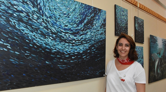 Resim öğretmeni ve ressam Şeymanur Sarıkaya, 'Cebimdeki Deniz Kabukları' adlı ikinci kişisel sergisini Antalya Müzesi Salonu'nda açtı