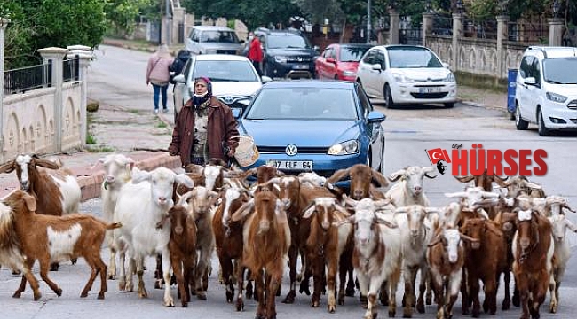 ANTALYA Konyaaltı Sahili'ne 500 metre uzakta doğup büyüdüğü evi yıllar içinde lüks binalar arasında kalmasına rağmen çocukluğundan bu yana yaptığı çobanlığı sürdüren Menşure...