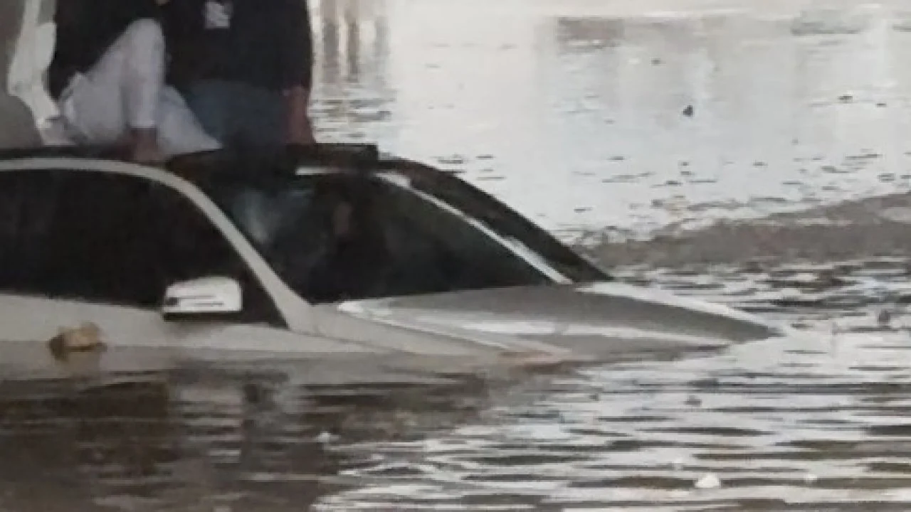 Suda mahsur kalan araçtaki 2 kişiyi itfaiye ekipleri kurtardı