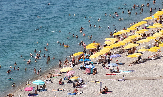 ANTALYA'da termometreler 46 dereceyi gösterirken, sıcaktan bunalan yerli ve yabancı turistler Konyaaltı Sahili'ne akın etti