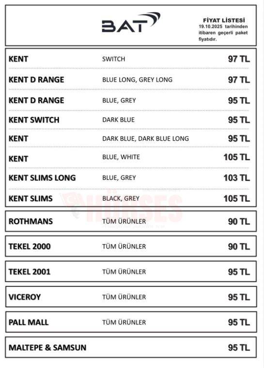İşte 19 Ekim 2025 tarihinden itibaren geçerli BAT Grubu güncel sigara fiyat listesi:
