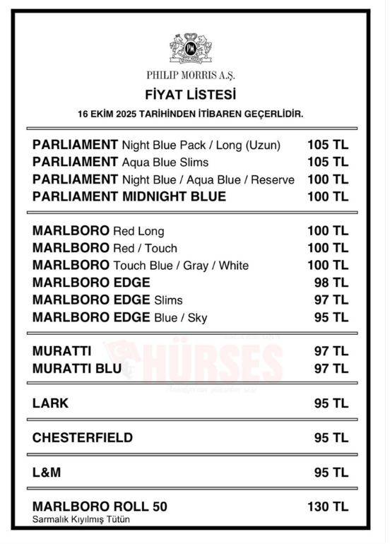 Aşağıda, 16 Ekim 2025 tarihli güncel fiyat listesine göre revize edilmiş haliyle Philip Morris A.Ş. sigara fiyat listesi yer almaktadır.
