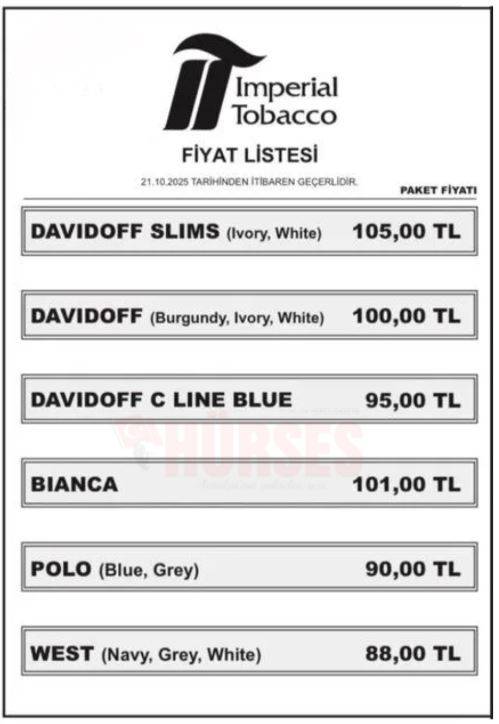 Aşağıda, 21 Ekim 2025 tarihli güncel listeye göre Imperial Tobacco grubuna ait sigaraların zamlı fiyatları yer almaktadır. 8 Temmuz 2025 listesine kıyasla tüm ürünlerde ciddi bir artış yaşanmış, fiyatlar ortalama %15–20 oranında yükselmiştir.