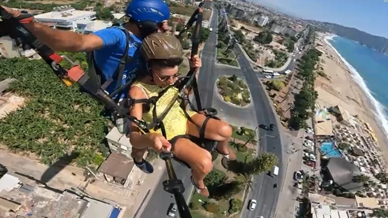 Olay, dün öğle saatlerinde Alanya’nın Dinek Kavşağı meydana geldi. Alanya’da paraşüt pilotu Hasan Karateke uçuş esnasında aksiyon kamerasıyla gökyüzünden Alanya manzarasını kayda alıyordu. İnişe geçmek için alçaldığı anlarda yaklaşık 60 metre yüksekteyken , Dinek Kavşağı’nda iki aracın çarpıştığı anlar kameraya yansıdı. Fren ve çarpma seslerinin yamaç paraşütü aksiyon kamerasına kadar ulaştığı görüntülerde, araçlardan birinin kontrolsüz şekilde kavşaktan karşı yöne giderken diğer araçla çarpıştığı görüldü.