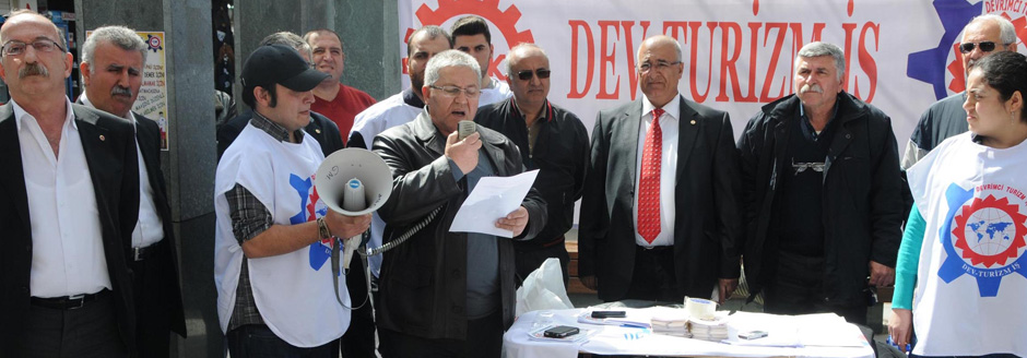 Sendika Genel Başkanı Mustafa Yahyaoğlu, Kazım Özalp Caddesi'nde basın açıklaması yaptı. Sendika üyelerinin de katıldığı açıklamada Yahyaoğlu, turizm sezonun açıldığını hatırlattı. Turizm işçilerinin yaşadığı sorunları anlatan Yahyaoğlu, yaz döneminde işçilerin 16 saate kadar artan mesai saatleriyle köle gibi çalıştığı ileri sürdü. Turizm işçilerinin, açlık sınırı 1200 liranın altında büyük çoğunluğunun 900 lira maaşla çalıştığını dile getiren Yahyaoğlu, "İnsanca çalışacak bir iş, insanca yaşanabilecek bir ücret hakkımızdır. Bir köle değiliz, işçiyiz" dedi. Yahyaoğlu, turizm işçilerine yasal haklarını kullanabilmesi için sendikalı olma çağrısı yaptı. Yahyaoğlu, turizm işçilerinin şunları talep ettiğini söyledi: