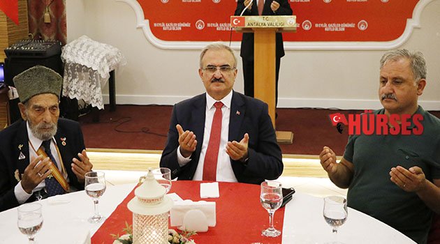 Antalya Orduevi'ndeki resepsiyona Vali Münir Karaloğlu, Ak Parti Antalya Milletvekili Mustafa Köse, Garnizon Komutanı Piyade Albay Tahir Savran, Cumhuriyet Başsavcısı Ramazan Solmaz, Akdeniz Üniversitesi Rektörü Prof. Dr. Mustafa Ünal, İl Emniyet Müdürü Celal Uzunkaya, MHP Antalya İl Başkanı Mustafa Aksoy, İl Müftüsü Osman Artan, siyasi parti temsilcileri, sivil toplum kuruluşları, şehit yakınları ve gaziler ile çok sayıda davetli katıldı. Protokol üyeleri ayrı masalarda gaziler ve şehit yakınlarıyla birlikte yemek yedi, sohbet etti. Vali Karaloğlu ise davetliler arasındaki en yaşlı gazi olan Kore gazisi 88 yaşındaki Hasan Yarıcı ile aynı masada oturdu. Karaloğlu, Yarıcı'yla yakından ilgilenip sohbet etti.